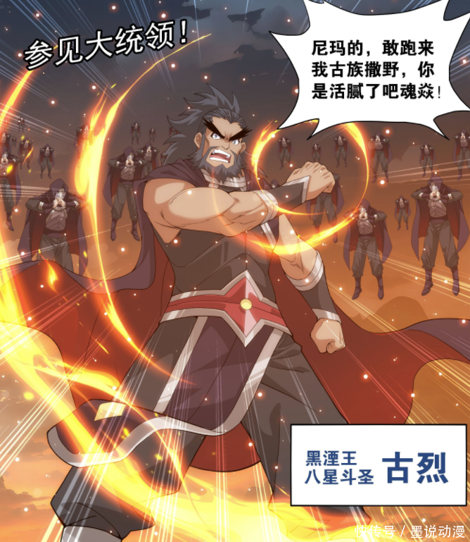 古烈是黑湮王,古族第二战力,也是在魂族入侵之时出现,后续葬天山脉大战也基本都没有出现过,当然这是被漫画省略掉。按照道理,哪怕是陀舍古帝洞府大战,古烈这种级别都能参与,可惜并没有出现。